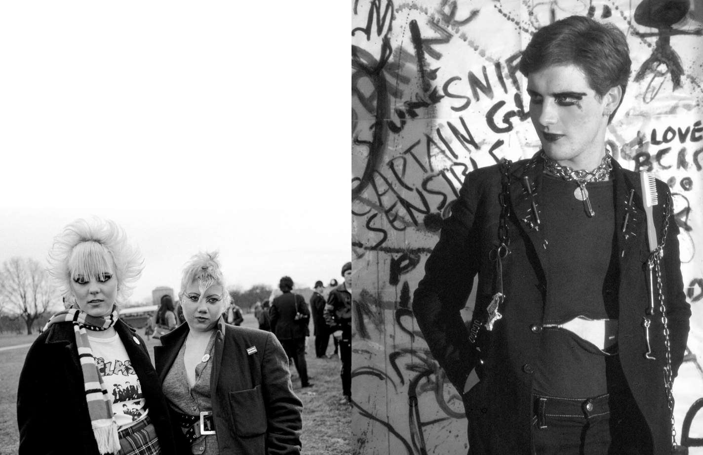 Left two punk girls, Hyde Park, London 1979. Right Will, South London 1975