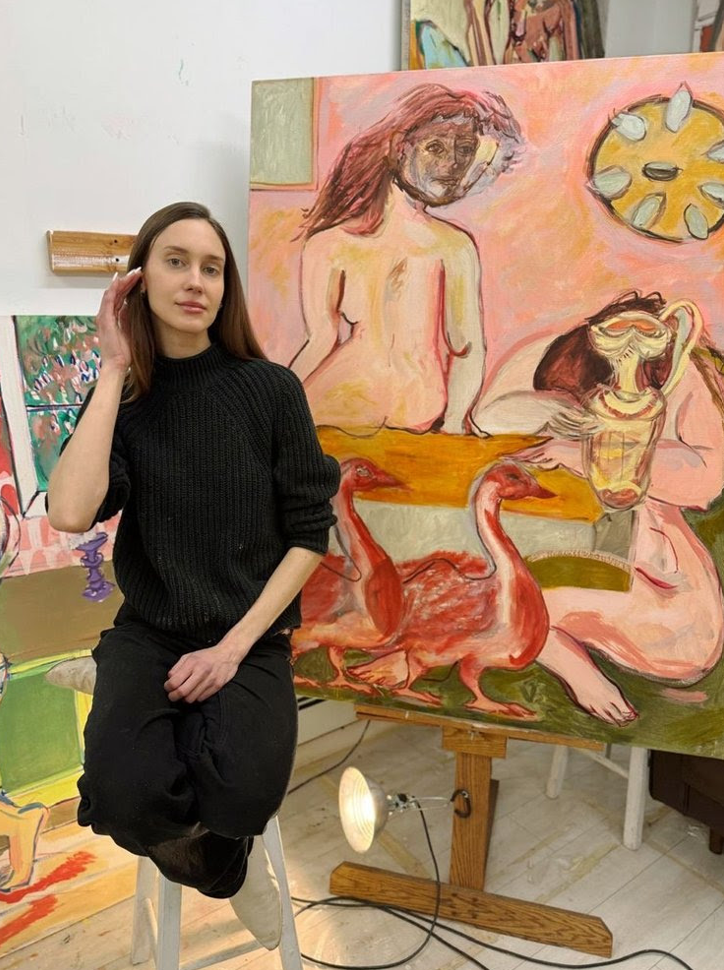 JM: It feels closer to an internal vision than an external one. I experience things as layered and in flux, and I think that’s where the sense of fluidity in the work comes from. I often think about how water holds and carries things without fixing them in place. I try to approach the paintings in a similar way. Figures slip between identities, spaces dissolve into one another, and nothing feels entirely stable.
